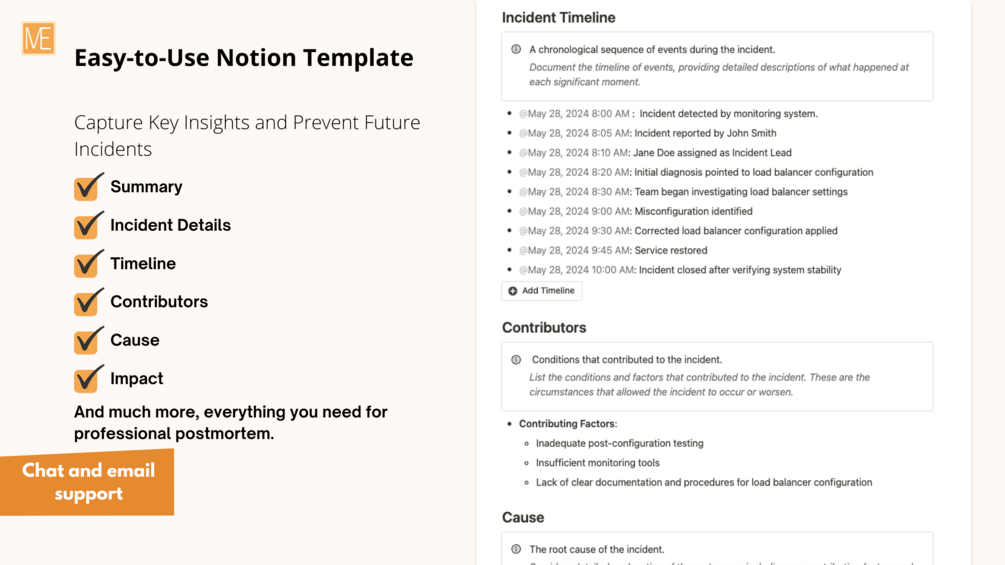 Transform how your team handles incidents. Get now and optimize your workflow with my Comprehensive Postmortem Template for Notion!