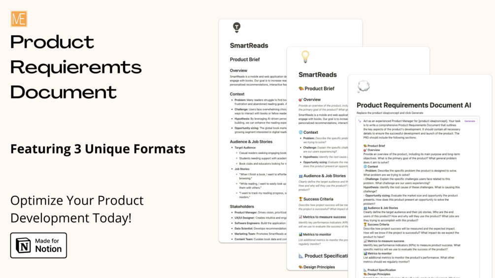 Streamline your product development process with this comprehensive Notion PRD template.